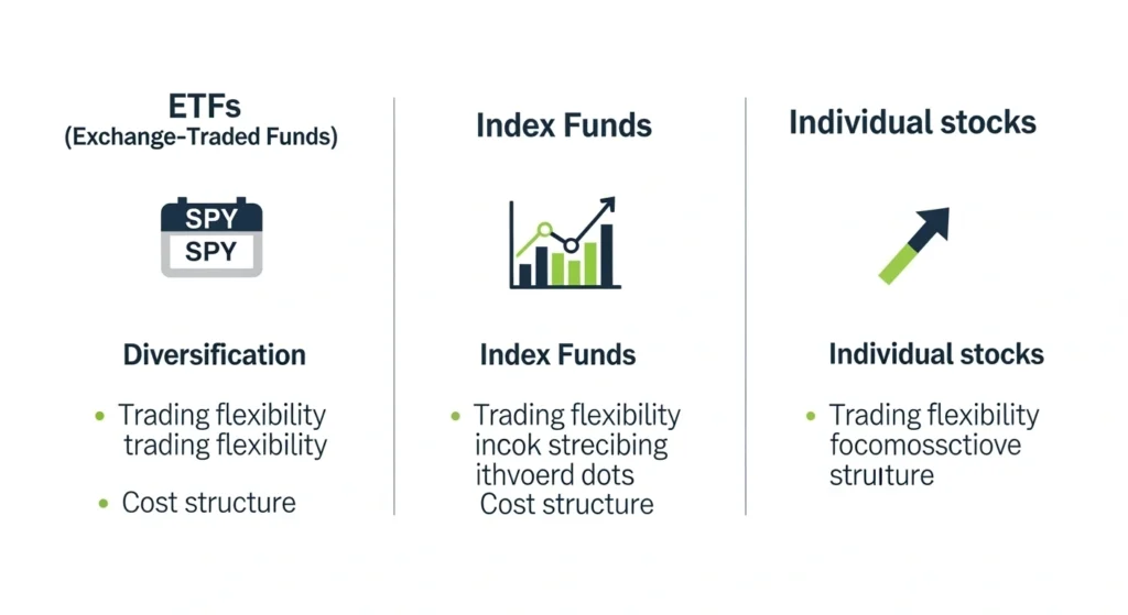 ETFs (Exchange-Traded Funds) → Trade like stocks, tax-efficient.