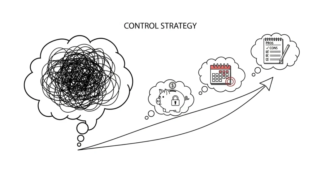 Give yourself a set amount of time before making a purchase. Small items: 1 hour; larger items: 24 hours. Often, the impulse fades, and you avoid unnecessary spending.
